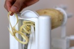 3. Creating a pocket for your stuffing, slice the potato lengthwise down the middle. Hold both ends of the potato/yam and push inward to loosen up the inner potato/yam and widen the mouth.